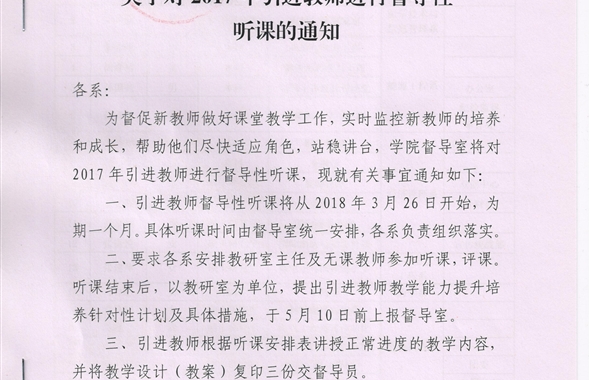 教學(xué)工作是學(xué)院的中心工作,教學(xué)質(zhì)量是教學(xué)工作永恒的主題,加強教學(xué)督導(dǎo)是學(xué)院加強教學(xué)管理、規(guī)…[詳細(xì)]更新時間:2017-01-10