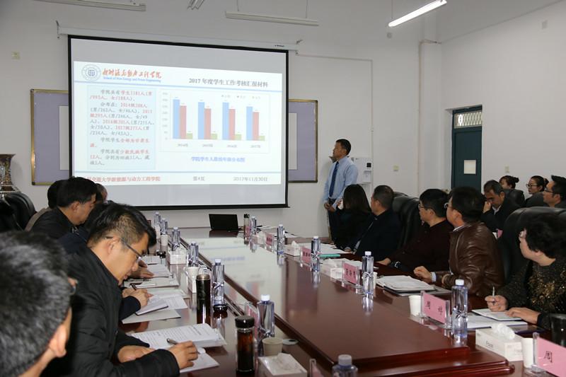 11月30日上午,蘭州交通大學(xué)2017年度學(xué)生工作考核組馬軍黨一行及各二級(jí)學(xué)院主管學(xué)生工作負(fù)責(zé)人在武威校區(qū)考核了新能源與動(dòng)力工程學(xué)院2017年度學(xué)生工作。考核現(xiàn)場(chǎng)會(huì)由學(xué)生工作考核組組長(zhǎng)、副校長(zhǎng)馬軍黨主持。新能源學(xué)院領(lǐng)導(dǎo)及學(xué)生管理工作人員參加了考核會(huì)。