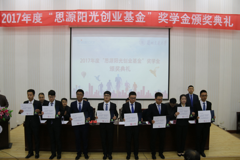 11月30日, 新能源與動力工程學院2017年度“思源陽光創(chuàng)業(yè)基金”獎學金頒獎儀式隆重舉行。蘭州交通大學副校長馬軍黨、學生工作處、招生就業(yè)處、保衛(wèi)處、團委、新能源與動力工程學院等領(lǐng)導出席頒獎典禮,典禮由蘭州交通大學新能源學院院長董海鷹主持,新能源與動力工程學院教師代表和相關(guān)專業(yè)學生以及獲獎學生300多人與會。