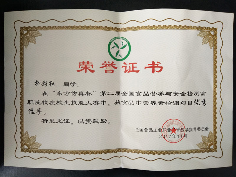 選派2名學(xué)生參加全國食品工業(yè)職業(yè)教育教學(xué)委員會主辦的第二屆全國食品營養(yǎng)與安全檢測大賽,參賽的項目分別為“食品中微生物檢測”和“食品中營養(yǎng)素檢測”。備賽期間,指導(dǎo)老師們帶領(lǐng)參賽選手放棄休息時間,迎難而上,認真解讀大賽規(guī)程,研究備賽方案,有針對性地制定訓(xùn)練計劃,高標(biāo)準(zhǔn)、高質(zhì)量,嚴(yán)要求地模擬比賽環(huán)境,磨練參賽學(xué)生的臨場應(yīng)變能力。經(jīng)過師生的不懈努力,參賽的兩個項目均獲得優(yōu)秀獎。通過參加此次比賽,全面提高了學(xué)生的實踐操作技能和臨場應(yīng)變能力,鍛煉了學(xué)生膽識和膽量,開闊了眼界,達到了“以賽促學(xué),以賽促教”的目的。