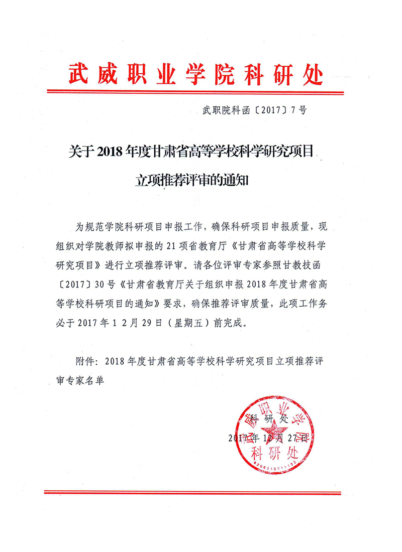 關(guān)于2018年度甘肅省高等學(xué)校科學(xué)研究項(xiàng)目立項(xiàng)推薦評審的通知