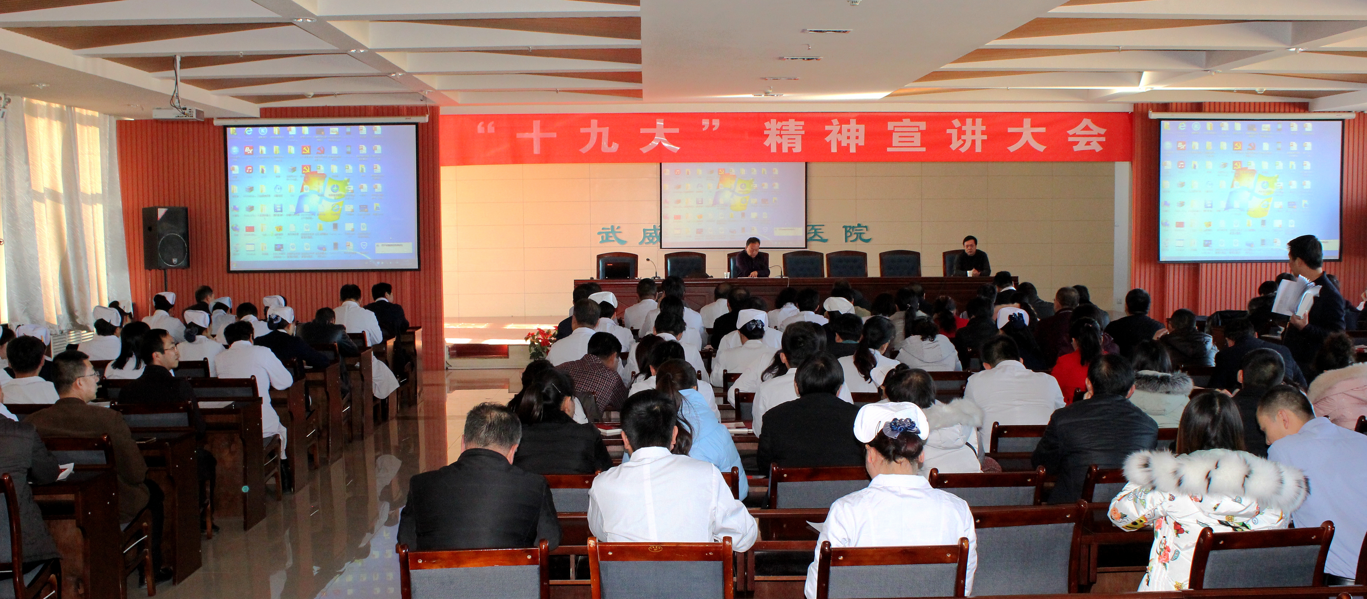 12月27日,直屬附屬醫(yī)院在內(nèi)科七樓舉行黨的十九大精神宣講報告大會。會議邀請武威市委講師團(tuán)副團(tuán)長張生龍作宣講報告。直屬附屬醫(yī)院黨委書記陳鋼主持報告會。醫(yī)院全體共產(chǎn)黨員、中層以上干部160余人聆聽了宣講報告。