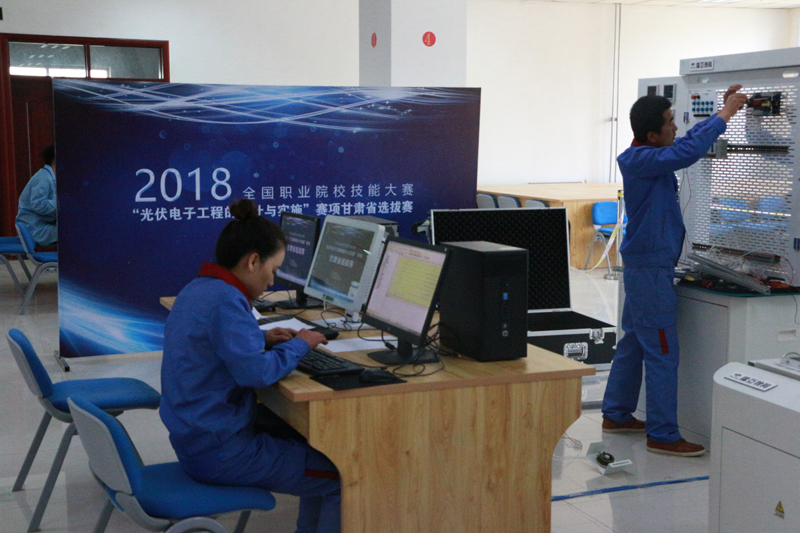 4月14日,2018年全國(guó)職業(yè)院校技能大賽“光伏電子工程的設(shè)計(jì)與實(shí)施”賽項(xiàng)甘肅省選拔賽在甘肅林業(yè)職業(yè)技術(shù)學(xué)院舉行。此次大賽有蘭州石化職業(yè)技術(shù)學(xué)院、甘肅林業(yè)職業(yè)技術(shù)學(xué)院、武威職業(yè)學(xué)院等6所院校的11支代表隊(duì)33名選手參加。由我院能源工程系黃述杰、張國(guó)祥老師指導(dǎo),田丹、馬亞飛、陳雪花三名學(xué)生組成的武威職業(yè)學(xué)院一隊(duì)榮獲二等獎(jiǎng)。