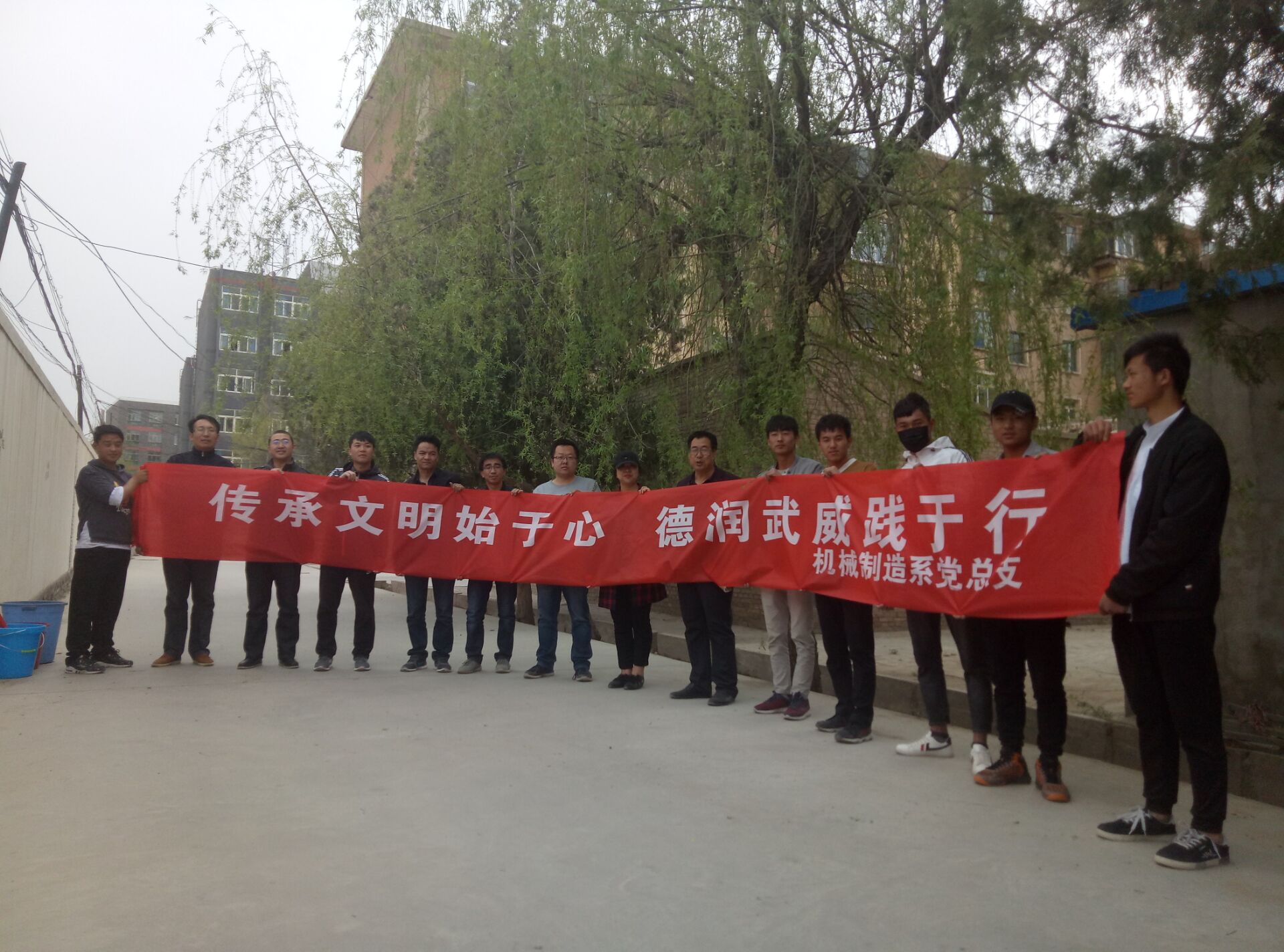 4月19日下午,機(jī)械制造系黨總支組織教師、學(xué)生兩個(gè)黨支部所有黨員及入黨積極分子共20余人在學(xué)院舊家屬樓院內(nèi)開展了環(huán)境治理活動(dòng)。