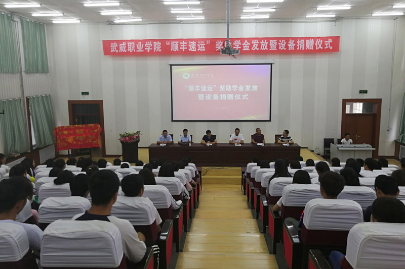 6月26日,武威職業(yè)學(xué)院“順豐速運(yùn)”獎助學(xué)金發(fā)放暨設(shè)備捐贈儀式在學(xué)院正德廳舉行。江蘇順豐速運(yùn)江蘇順豐通訊服務(wù)有限公司副總經(jīng)理張輝華先生,武威職業(yè)學(xué)院黨委委員、副院長王永緒同志、江蘇順豐通訊服務(wù)有限公司人力資源部經(jīng)理孫潞、項目經(jīng)理高國軍、招聘經(jīng)理明微、經(jīng)濟(jì)管理系書記潘從民、主任張伯成、物流專業(yè)教師代表和物流專業(yè)16、17級全體同學(xué)及相關(guān)專業(yè)學(xué)生代表近200人參加本次儀式。發(fā)放儀式由潘從民主持。