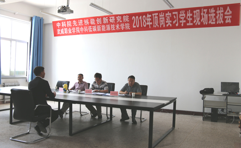 2018年6月21日,中國(guó)科學(xué)院先進(jìn)核能創(chuàng)新研究院在學(xué)院舉行了2018年頂崗實(shí)習(xí)學(xué)生現(xiàn)場(chǎng)選撥會(huì),由中科院先進(jìn)核能創(chuàng)新研究院綜合管理部常務(wù)副主任王納秀、熔鹽機(jī)械部熱工組組長(zhǎng)王曉和中科武威新能源研究所所長(zhǎng)朱智勇組成的專家組對(duì)能源類專業(yè)和機(jī)械類專業(yè)學(xué)生進(jìn)行了現(xiàn)場(chǎng)面試,遴選出的14名同學(xué)將于7月份前往中國(guó)科學(xué)院先進(jìn)核能創(chuàng)新研究院進(jìn)行為期一年的專業(yè)頂崗實(shí)習(xí),他們將在中科院先進(jìn)核能創(chuàng)新研究院專家教授的帶領(lǐng)下,通過(guò)一對(duì)一指導(dǎo)和崗位輪訓(xùn)等形式全面系統(tǒng)完成頂崗實(shí)習(xí),了解行業(yè)技術(shù)需求和技術(shù)最新進(jìn)展,掌握更多的專業(yè)知識(shí)和實(shí)踐技能,感受頂級(jí)科研院所深厚的科技氛圍和文化氛圍,全面提升專業(yè)水平和綜合素養(yǎng),為成功走向社會(huì)奠定良好的基礎(chǔ)。