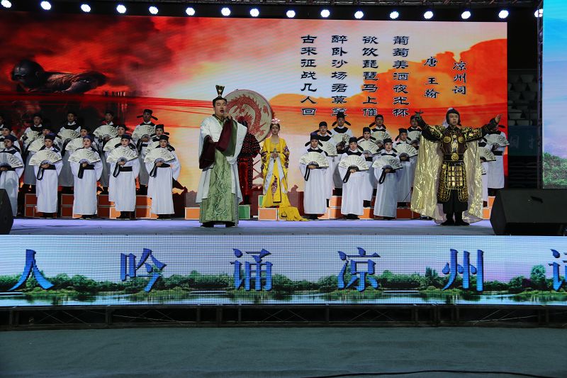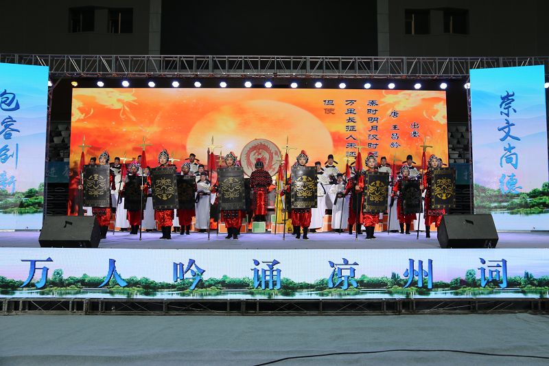 9月9日,來自全市三縣一區(qū)、市直機(jī)關(guān)、市老干局、市工商聯(lián)、市直教育系統(tǒng)選拔出的23個吟誦涼州詞節(jié)目齊聚武威市體育館,上演了“車馬相交錯,歌吹日縱橫”的涼州遺韻。學(xué)院推送的節(jié)目《金戈鐵馬入夢涼州》在決賽中成績位列第四,榮獲一等獎,并被市文廣局選送參加第二屆涼州文化論壇暨中國?河西走廊第八屆有機(jī)葡萄美酒節(jié)文藝展演。