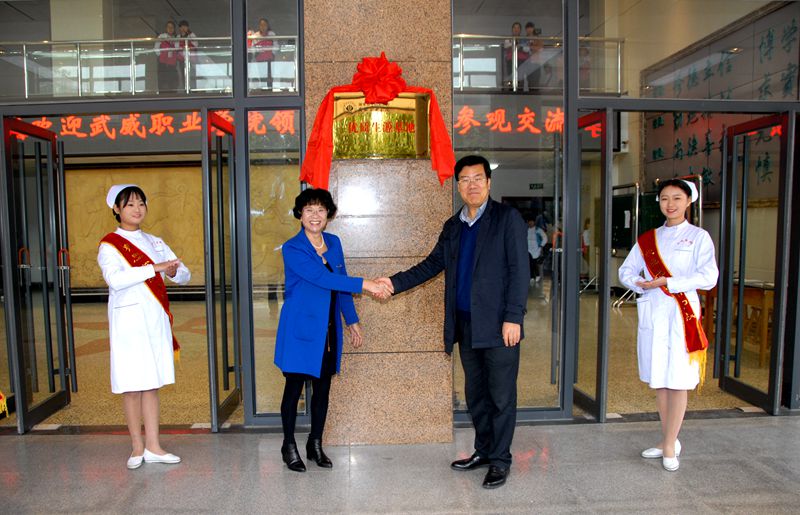 10月21日在天水市衛(wèi)生學校,潘玉華和天水衛(wèi)校校長毛如君為“武威職業(yè)學院優(yōu)質生源基地”揭牌,天水衛(wèi)校校領導班子成員和相關處室負責人參加了揭牌儀式。之后毛如君介紹了學校發(fā)展情況和校園整體規(guī)劃,并陪同潘玉華一行參觀了學校的教學樓、實驗實訓樓、學生公寓、學生食堂等教學設施和生活環(huán)境。