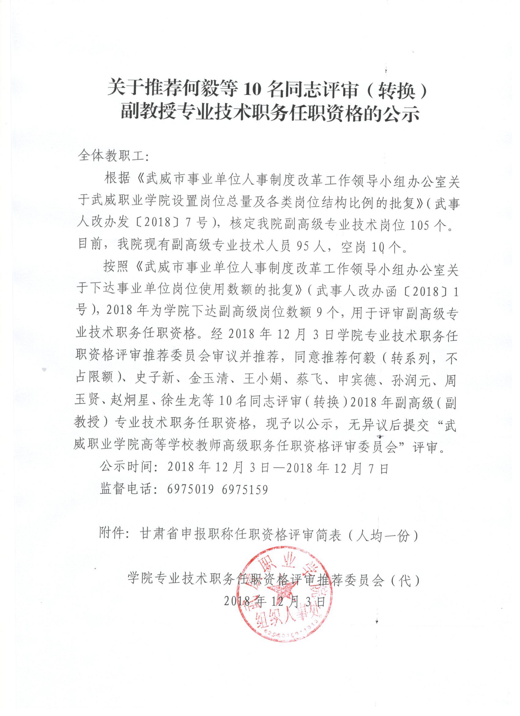 關(guān)于推薦何毅等10名同志評(píng)審(轉(zhuǎn)換)副教授專業(yè)技術(shù)職務(wù)任職資格的公示