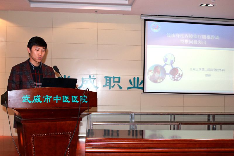 蘭大二院脊柱外科副主任醫(yī)師邢帥以《淺談脊柱內(nèi)鏡治療腰椎游離型椎間盤突出》為題,講授游離型腰椎間盤突出癥經(jīng)椎間盤鏡下椎間盤髓核摘除手術(shù)治療路徑及效果。在場(chǎng)醫(yī)務(wù)人員就該技術(shù)的路徑與方法,醫(yī)療安全性等問題,與邢帥醫(yī)師展開熱烈討論。邢帥認(rèn)為,鏡下手術(shù)治療游離型腰椎間盤突出癥具有手術(shù)安全、創(chuàng)傷小、費(fèi)用低、術(shù)后脊柱穩(wěn)定性好等優(yōu)點(diǎn),值得臨床推廣應(yīng)用。