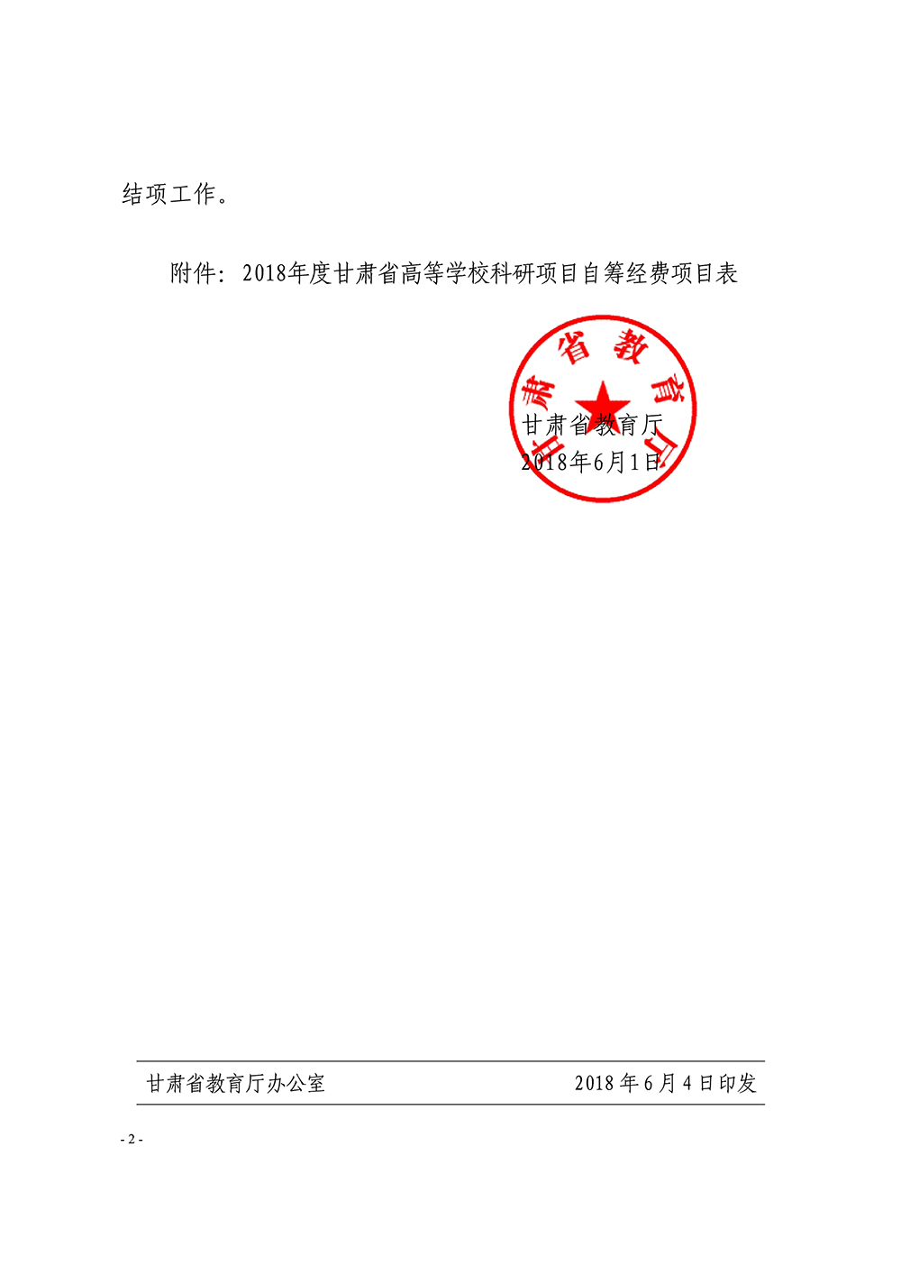 甘肅省教育廳關(guān)于下達(dá)2018年度甘肅省高等學(xué)??蒲许?xiàng)目自籌經(jīng)費(fèi)項(xiàng)目的通知