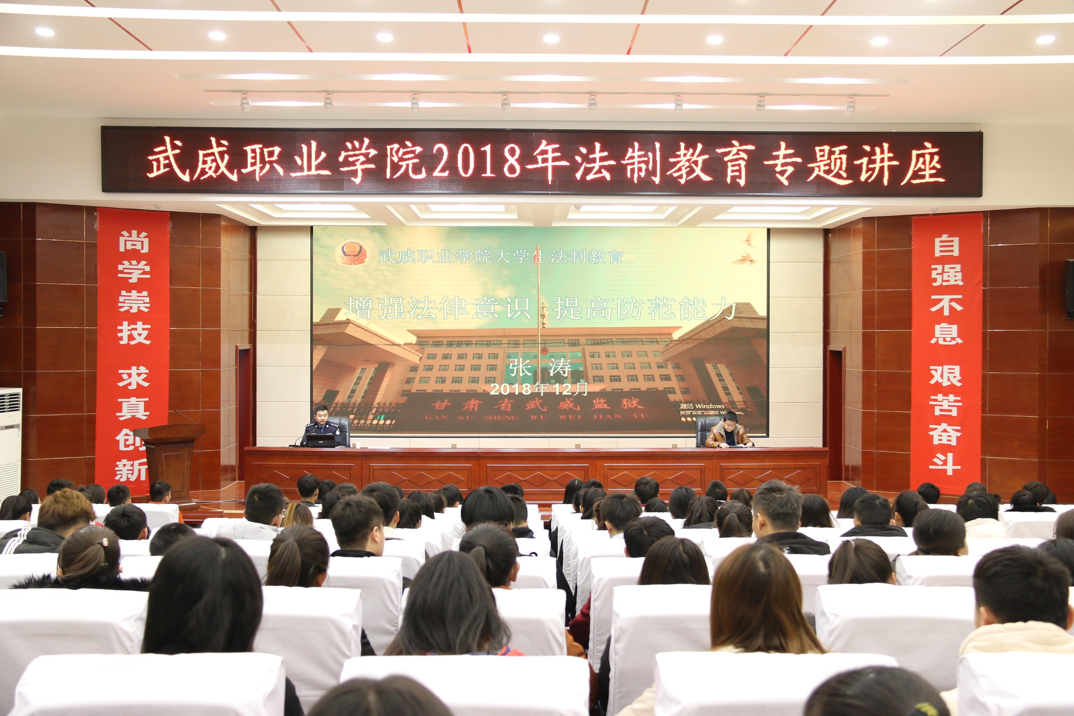 講座邀請(qǐng)了甘肅省武威監(jiān)獄第七監(jiān)區(qū)副監(jiān)區(qū)長(zhǎng)張濤警官主講。講座采取以案說(shuō)法、以案學(xué)法、以法警示的方式,圍繞校園欺凌、網(wǎng)絡(luò)詐騙、校園貸等熱點(diǎn)問(wèn)題,分析了目前青少年違法犯罪的現(xiàn)狀,闡釋了法律對(duì)于維護(hù)社會(huì)秩序、影響人們生活的重要性,深入淺出地講解了大學(xué)生應(yīng)該如何遵紀(jì)守法、如何預(yù)防犯罪、如何防止不法侵害、打擊犯罪及自我防范的一些基本方法,教導(dǎo)同學(xué)們要增強(qiáng)法律意識(shí),提高防范能力,做一名知法、懂法、守法、用法的合格公民。