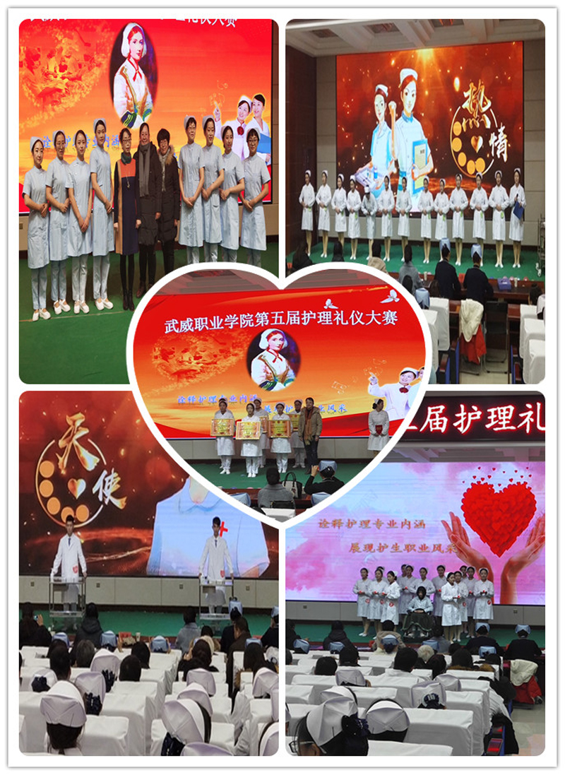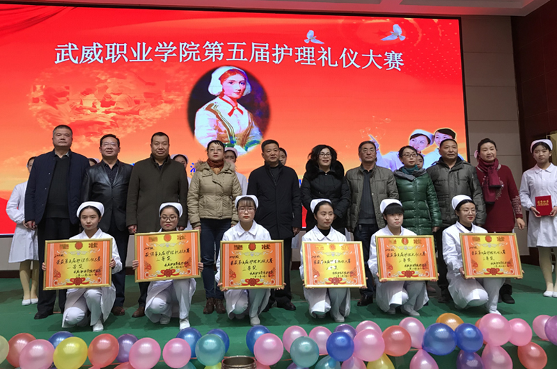 為弘揚(yáng)南丁格爾精神,強(qiáng)化護(hù)生禮儀修養(yǎng),推進(jìn)護(hù)理專業(yè)深層次內(nèi)涵式發(fā)展,助推我市文明城市建設(shè),12月21日,在大學(xué)生活動(dòng)中心菁英廳舉辦了“武威職業(yè)學(xué)院第五屆護(hù)理禮儀大賽”。學(xué)院黨委書(shū)記、院長(zhǎng)趙明、學(xué)院副院長(zhǎng)田迎春、院工會(huì)主席金玉龍、教務(wù)處處長(zhǎng)仲生仁、學(xué)生工作處處長(zhǎng)王守云、招生就業(yè)處處長(zhǎng)蔡柱山、科研處處長(zhǎng)張玉琴、圖書(shū)館館長(zhǎng)黃雪梅、電子信息黨總支書(shū)記袁青年應(yīng)邀出席本次活動(dòng),護(hù)理系300多名師生觀看了本次比賽。