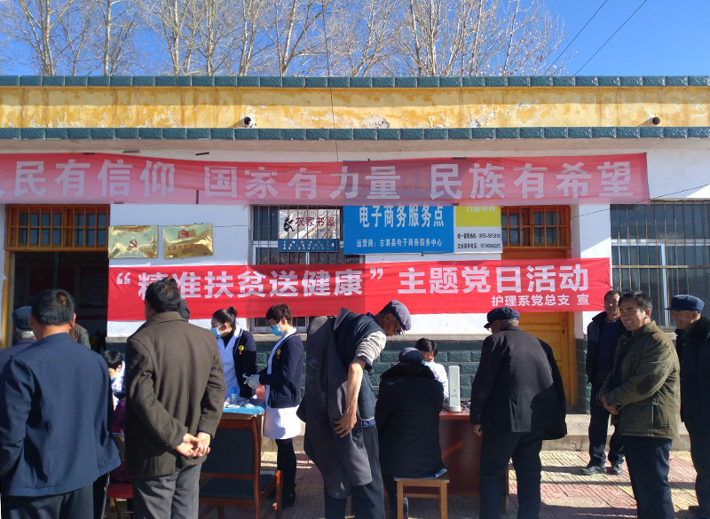 為深入學(xué)習(xí)宣傳貫徹黨的十九大精神及健康扶貧等惠民政策,減少出現(xiàn)“因病致貧”、“因病返貧”,11月23日,護理系黨總支組織黨員教師到我院精準扶貧點古浪縣黑松驛鎮(zhèn)尚家臺村開展“健康扶貧,送醫(yī)送藥”主題黨日活動。