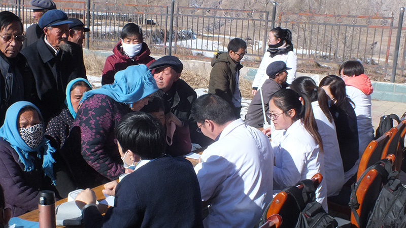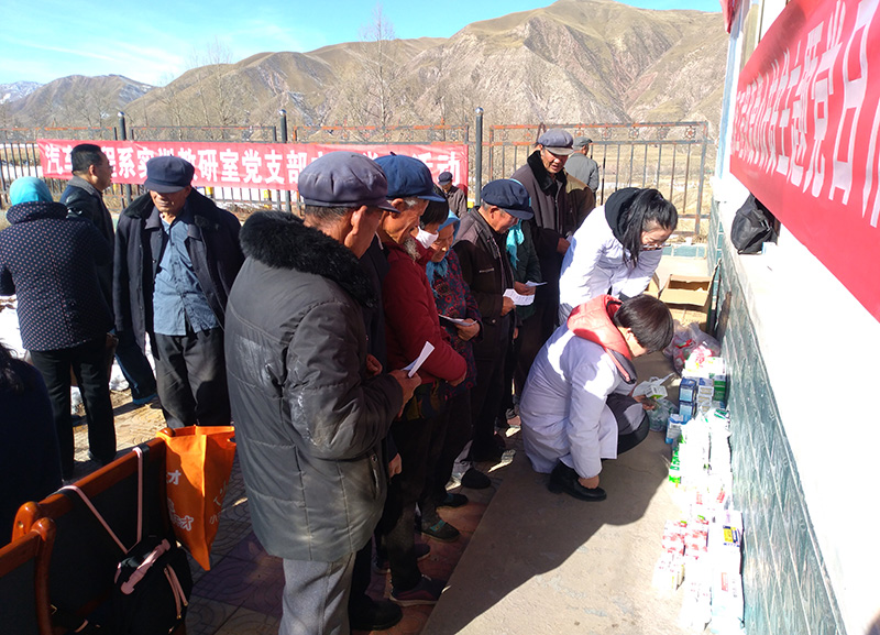到達目的地后,黨員們不顧辛勞,分成兩組,一組由護理系黨總支書記張建輝帶領(lǐng)前往臥病在床的扶貧對象家里,親切詢問病情及家里近況,送上常備藥品。另一組在當?shù)卮宀窟M行義診活動,醫(yī)護人員仔細給村民們進行體檢,耐心解答、細心診治;對前來問診的村民認真進行血壓、血糖、丙肝等項目的檢測、免費發(fā)放藥品并對糖尿病、高血壓等慢性病的飲食、活動和用藥進行指導(dǎo),普及衛(wèi)生常識和健康知識。醫(yī)護人員的精心服務(wù)讓村民們倍感欣慰,受到了他們的熱烈歡迎和一致稱贊。