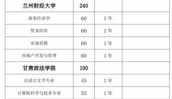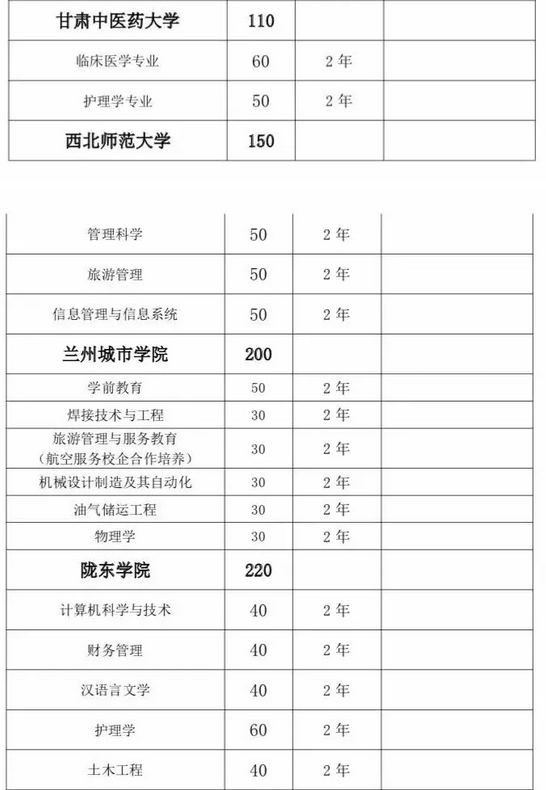 甘肅省2019年普通高?!皩I尽闭猩媱潊R總表