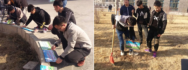 機(jī)械制造系開展校園草坪文明標(biāo)語樹立活動