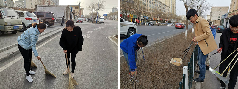 本次活動主要是對學院周邊街道進行清掃,努力為城市民眾營造干凈、整潔、舒適的生活環(huán)境。30多名志愿者手持垃圾袋,將果皮、紙屑、塑料袋、煙蒂、礦泉水瓶等垃圾撿起放入垃圾袋,青年志愿者們分散在街道邊開展清掃垃圾活動。每位志愿者都熱情高漲,他們不怕臟,不怕累,認真地把垃圾撿拾干凈,形成一道獨特的風景。路上遇見居民,他們還向居民講解保護環(huán)境的重要性,倡議要愛護我們美麗的家園,為大家創(chuàng)造一個良好的生活環(huán)境。