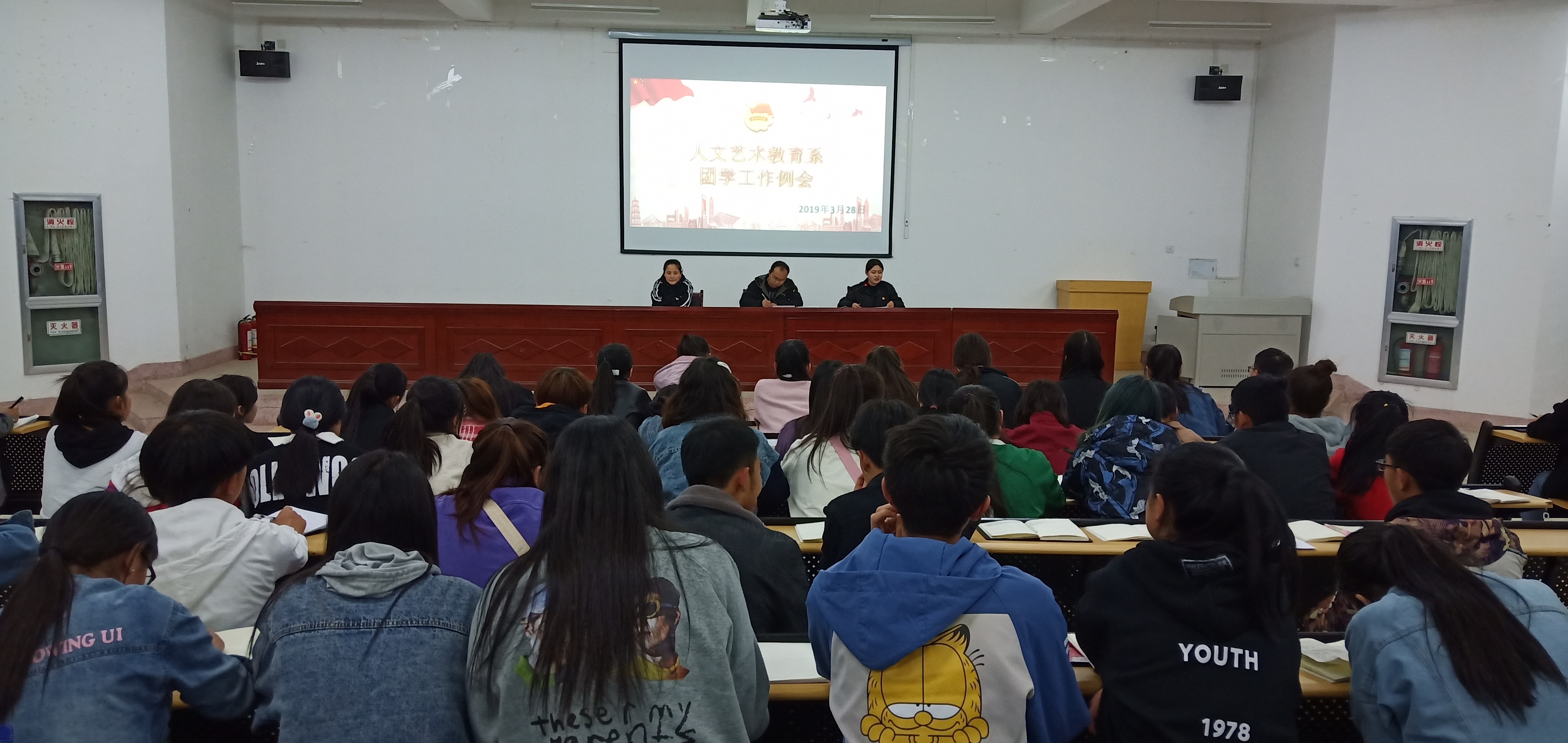 ? ? ? ?3月28日晚,人文藝術教育系在勵勤樓階梯教室召開了三月份工作例會,人文藝術教育系分團委書記唐鑫基老師、分團委全體學生干部,干事、17、18級各班班委共一百余人參加會議。會議安排部署了本學期分團委共青團常規(guī)工作和重點工作,討論通過了《人文藝術教育系2019年基層共青團考核細則》。