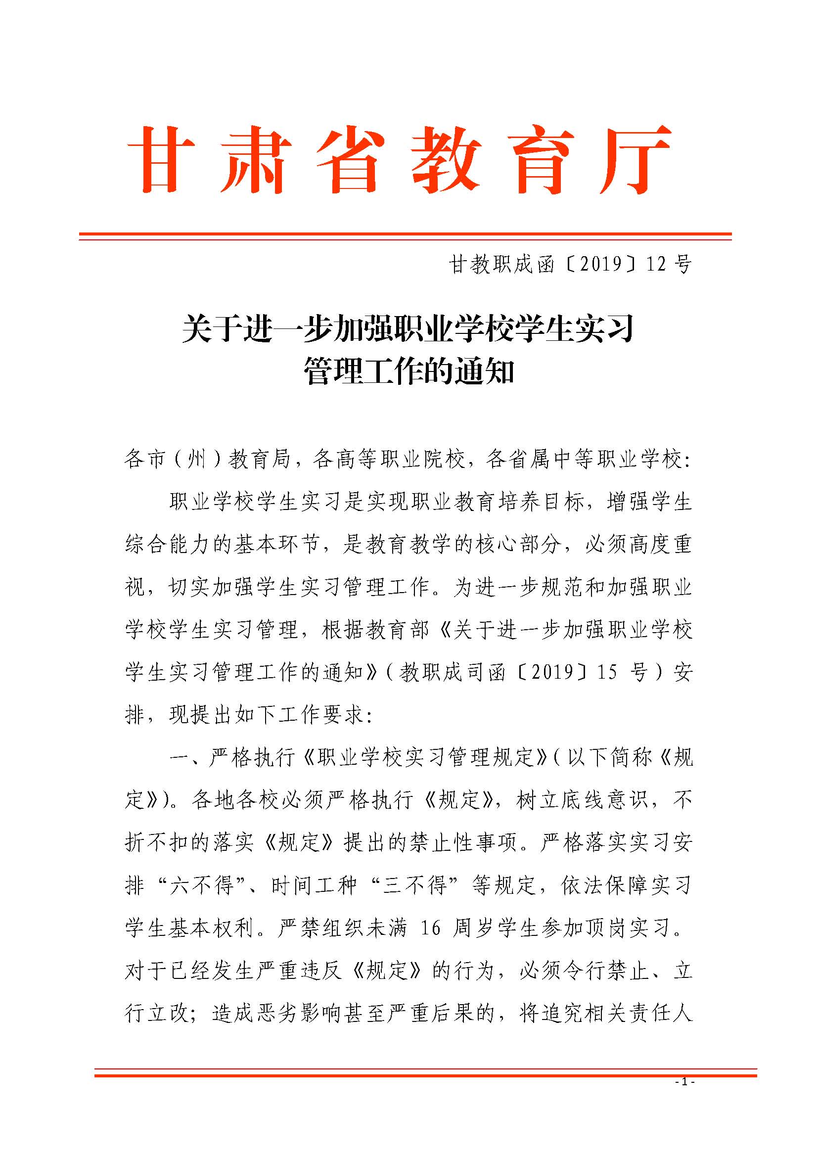 關于進一步加強職業(yè)學校學生實習管理工作的通知
