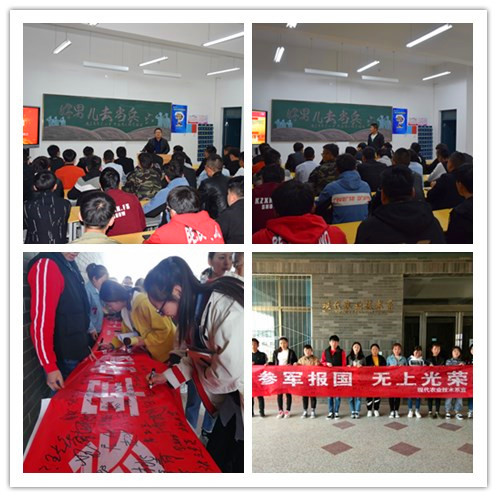首先蔡海老師向同學(xué)們細(xì)致地講解了今年的征兵條件、報(bào)名方法及相關(guān)優(yōu)待政策,深入宣傳依法服兵役的積極意義,鼓勵(lì)適齡青年積極報(bào)名應(yīng)征,報(bào)效祖國。同時(shí)邀請(qǐng)2017級(jí)設(shè)施農(nóng)業(yè)與裝備大專班趙文文同學(xué)做了個(gè)人事跡匯報(bào)。該生曾在陸軍某部服役,現(xiàn)光榮退伍,回校就讀。交流中,他鼓勵(lì)同學(xué)們要敢于有夢(mèng)、敢于追夢(mèng)、敢于圓夢(mèng),讓青春在軍營的歷練中、在為祖國的奉獻(xiàn)中閃光。他還生動(dòng)的講述了部隊(duì)的生活和訓(xùn)練情況,這段經(jīng)歷使他收獲了遠(yuǎn)大的理想信念,培養(yǎng)了良好的行為習(xí)慣,練就了強(qiáng)健的身體,這些將會(huì)讓他終身受益?;顒?dòng)最后進(jìn)行了“參軍報(bào)國,無上光榮”主題簽名儀式。