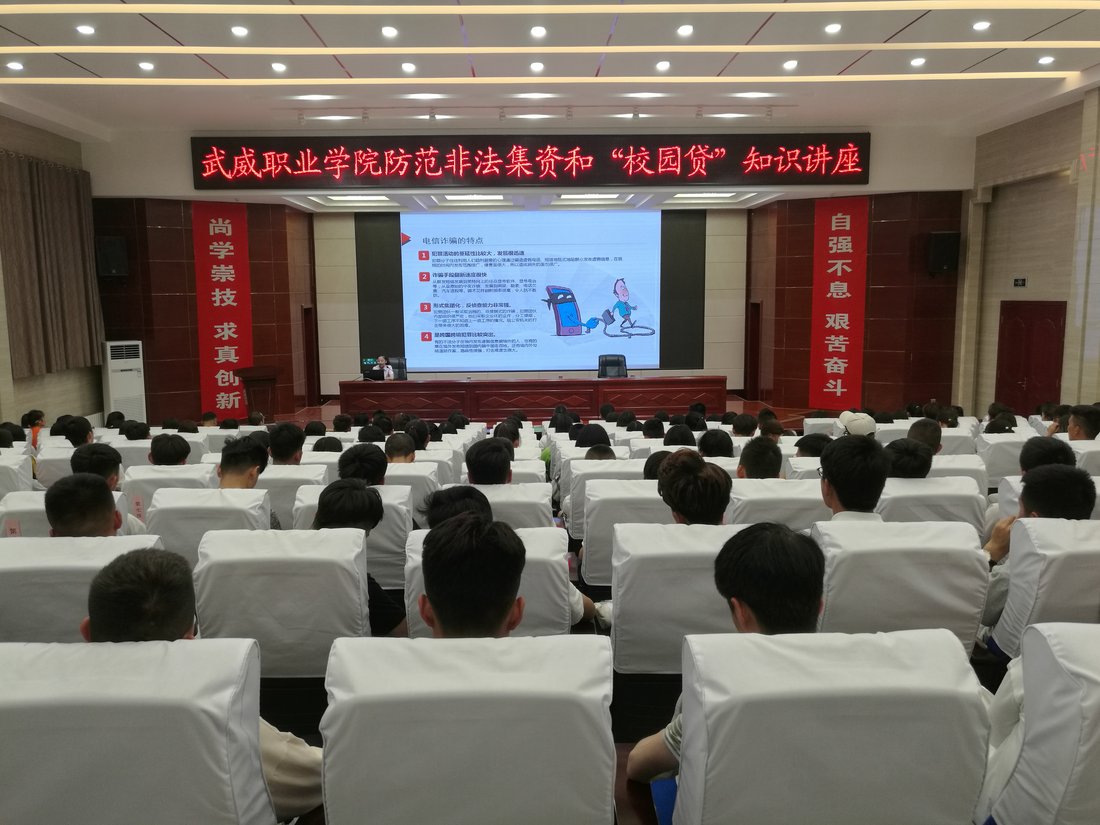 為深入貫徹落實甘肅省2019年防范非法集資和金融領(lǐng)域掃黑除惡宣傳月活動的有關(guān)精神,保護廣大師生的合法權(quán)益。6月9日晚,學(xué)院邀請中國農(nóng)業(yè)銀行武威支行風(fēng)險管理部工作人員朱琳在學(xué)院菁英廳作了關(guān)于防范非法集資和校園貸知識講座,學(xué)院副院長王永緒出席活動,保衛(wèi)處、計劃財務(wù)處負責同志及各系師生代表200余人聆聽了講座。