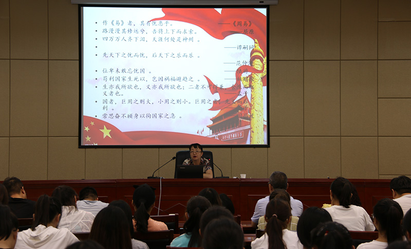 7月3日下午,學(xué)院黨委委員、副院長(zhǎng)田迎春在行樹(shù)樓北側(cè)會(huì)議室為醫(yī)學(xué)技術(shù)與信息管理系、藥學(xué)系的全體黨員、預(yù)備黨員、入黨積極分子和其聯(lián)系班級(jí)、宿舍、社團(tuán)學(xué)生共計(jì)140余人作了題為《溯源 求理 踐行——愛(ài)國(guó)主義精神傳承與弘揚(yáng)》的黨課。