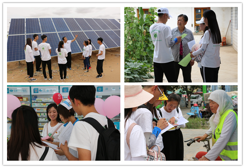 7月17-18日,實踐團前往武威泰豐新能源扶貧電站,了解"光伏+農(nóng)業(yè)"工程實施、電站運維管理情況,了解實施光伏扶貧項目在脫貧攻堅、造福廣大貧困群眾中帶來的良好經(jīng)濟效益、生態(tài)效益和社會效益。參觀結束后團隊成員深入武威市各社區(qū)、周邊鄉(xiāng)鎮(zhèn)發(fā)放宣傳資料、折頁,開展低碳環(huán)??破招麄骰顒?。通過現(xiàn)場答題的形式與市民互動,普及更多日常綠色環(huán)保生活知識,引導社會公眾綠色低碳消費,為建設低碳環(huán)保社區(qū)打下良好的基礎。