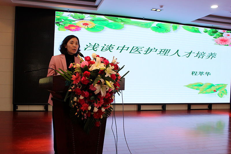 程萃華主講的題目是:《淺談中醫(yī)護(hù)理人才培養(yǎng)》。她說(shuō):中醫(yī)護(hù)理人才培養(yǎng)重點(diǎn)要做好以下幾個(gè)方面的工作:一要加強(qiáng)新入職護(hù)理人員的崗前培訓(xùn),注重中醫(yī) “仁、和、精、誠(chéng)”核心價(jià)值觀的人文素養(yǎng)的培育;二要加強(qiáng)中醫(yī)基本理論和中醫(yī)操作技能培訓(xùn),用中醫(yī)理論指導(dǎo)中醫(yī)臨床護(hù)理工作;三要制定中醫(yī)護(hù)理人才引進(jìn)計(jì)劃,著力引進(jìn)高層次中醫(yī)護(hù)理人才,加大中醫(yī)護(hù)理人才的招聘比例;四要爭(zhēng)取醫(yī)院領(lǐng)導(dǎo)支持,落實(shí)中醫(yī)護(hù)理在人才引進(jìn)和培養(yǎng)、教學(xué)科研、中醫(yī)護(hù)理技術(shù)推廣、中醫(yī)護(hù)理信息管理、重點(diǎn)專(zhuān)科建設(shè)等方面的經(jīng)費(fèi)投入,保障醫(yī)院的中醫(yī)護(hù)理工作向前發(fā)展。