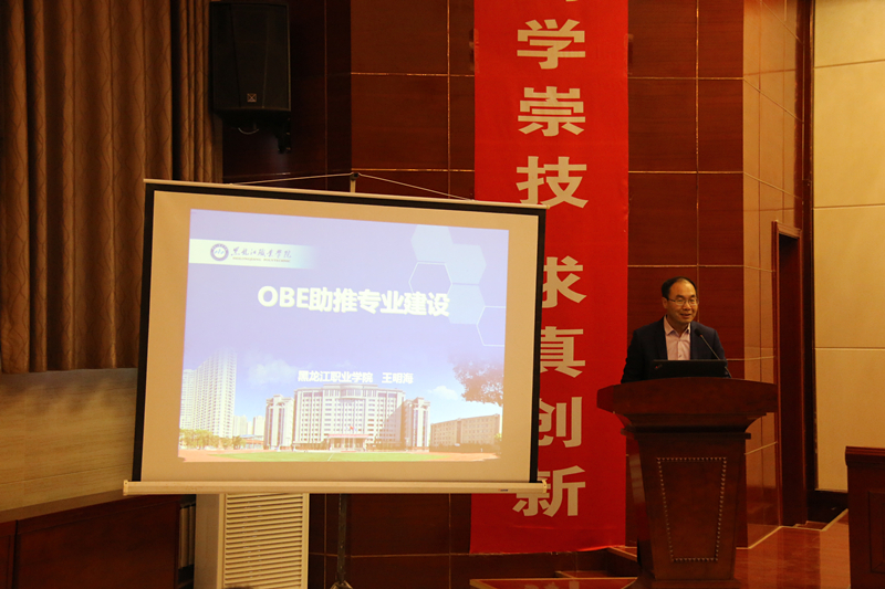 王明海教授以“成果導向教育(OBE)助推專業(yè)建設”為題作了專題報告。他結(jié)合自身多年的實踐經(jīng)驗和研究成果向與會者回顧了黑龍江職業(yè)學院成果導向課程開發(fā)歷程,從定義成果、設計課程到教學授課、評定結(jié)果、決定進階五個方面系統(tǒng)闡述了成果導向課程開發(fā)與實施路徑,為參會高職院校教學改革提供了參考方向。