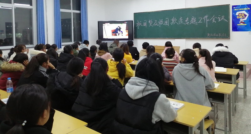 會議重點學(xué)習(xí)關(guān)于校園貸典型案例、視頻資料,普及法律知識,增強學(xué)生金融、網(wǎng)絡(luò)安全防范意識;介紹有關(guān)校園欺凌、校園暴力的常識和造成的危害,增強學(xué)生的法制觀念。