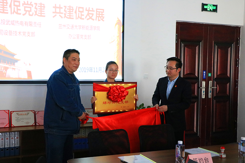 隨后,任陶和呂錫成代表雙方黨支部簽署了共建協議書,并共同為支部共建揭牌,甘肅電投武威熱電有限責任公司設備技術黨支部為在場人員贈送書簽,傳遞友情,祝福支部結對共建。
