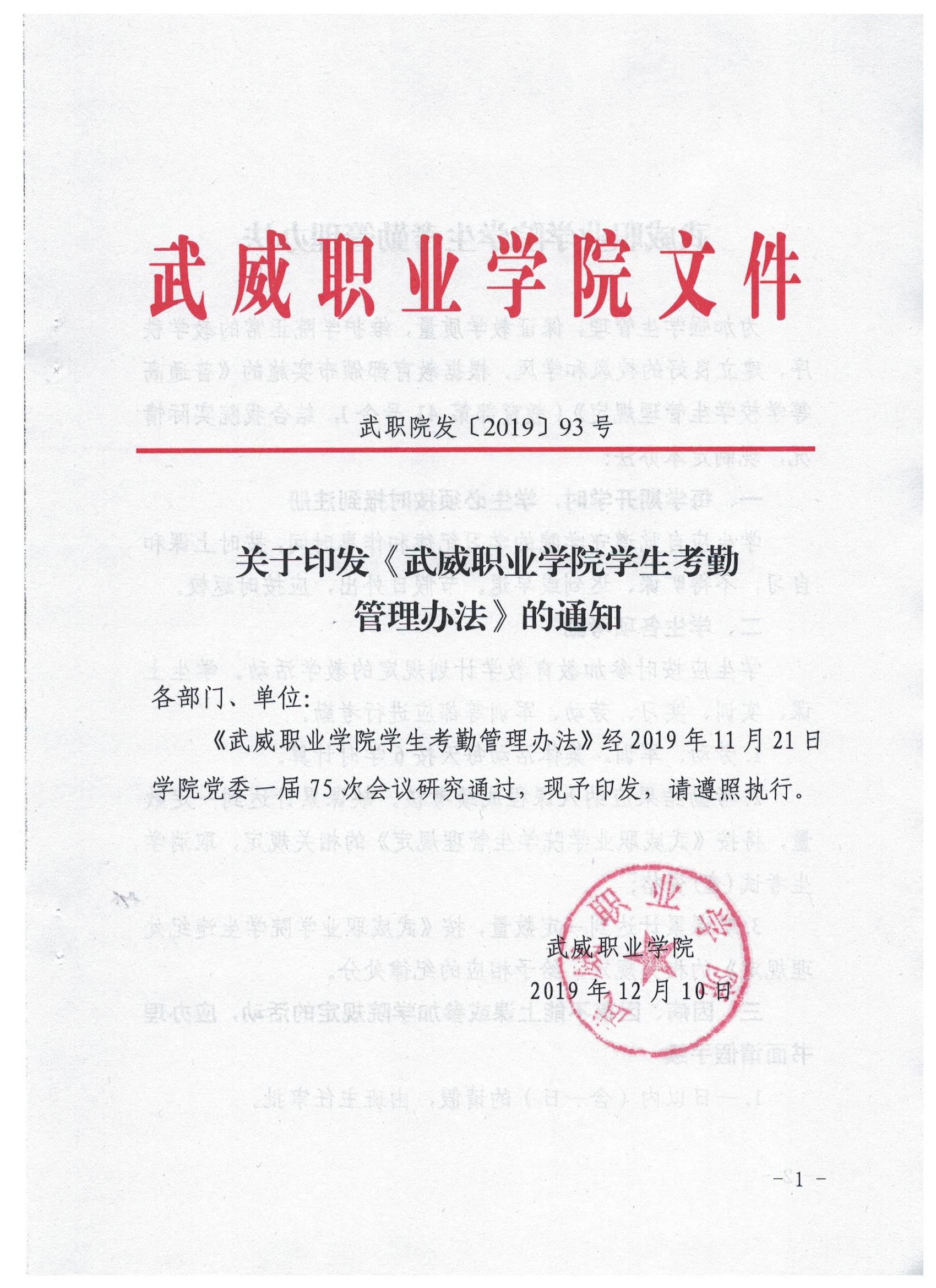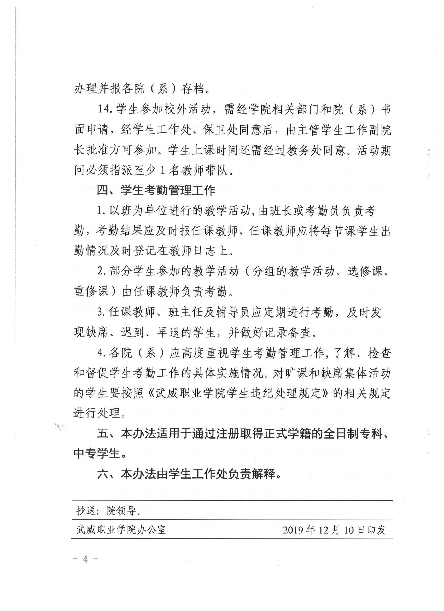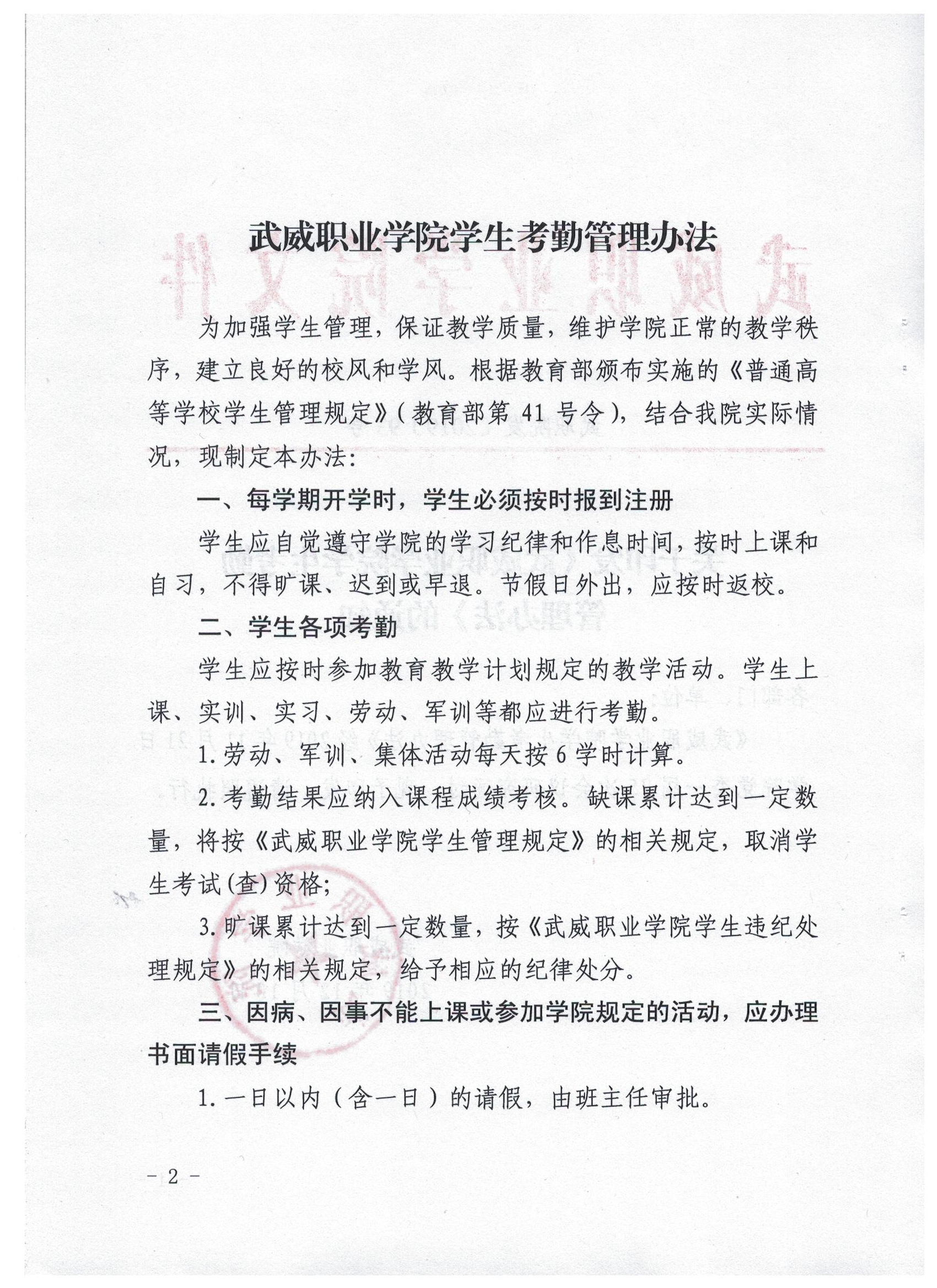 武威職業(yè)學院學生考勤管理辦法