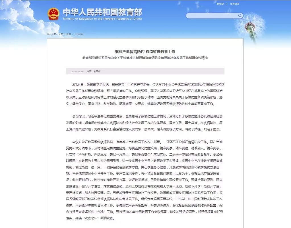 作者: 來源:教育部官網(wǎng) 發(fā)布時(shí)間:2020年02月25日 點(diǎn)擊數(shù):793 字號(hào):【