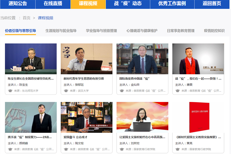 為推進(jìn)當(dāng)前教育系統(tǒng)疫情防控和學(xué)生思想政治教育工作,由教育部主辦,高校思想政治工作隊(duì)伍培訓(xùn)研修中心承辦的“共抗疫情顯擔(dān)當(dāng),愛國力行育新人”全國高校輔導(dǎo)員網(wǎng)絡(luò)培訓(xùn)示范班開班。