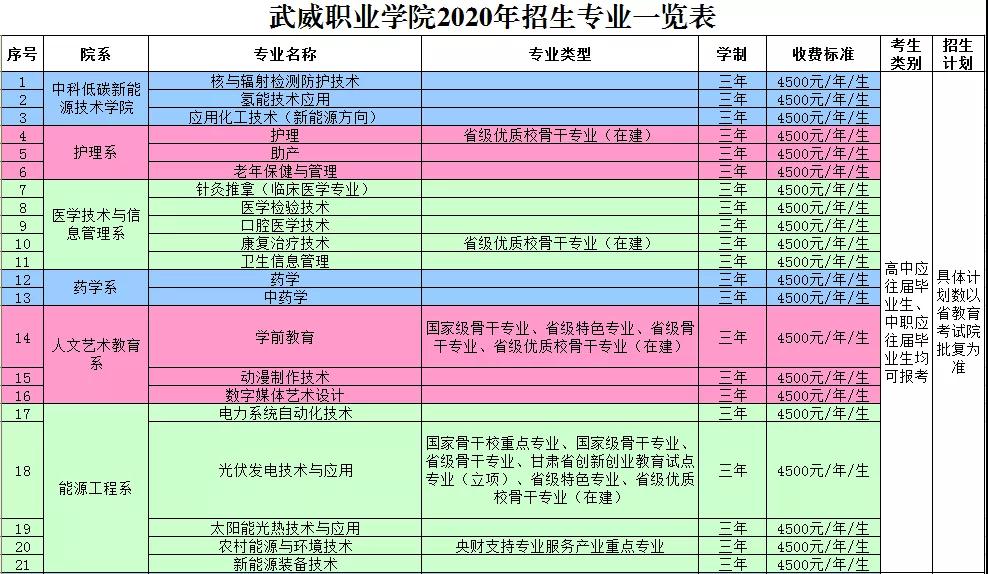 武威職業(yè)學(xué)院2020年招生專業(yè)