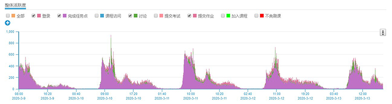 從學(xué)院在線教學(xué)平臺(tái)管理數(shù)據(jù)看,在線教學(xué)第三周內(nèi)教學(xué)資源學(xué)生訪問(wèn)量達(dá)到了983990人次,學(xué)生到課134631人次,完成課后作業(yè)649次,上交學(xué)生44266人次。各門(mén)課程學(xué)習(xí)任務(wù)完成率普遍有所提高,大多數(shù)課程按照教學(xué)計(jì)劃進(jìn)度學(xué)生學(xué)習(xí)完成率已全部達(dá)到100%。