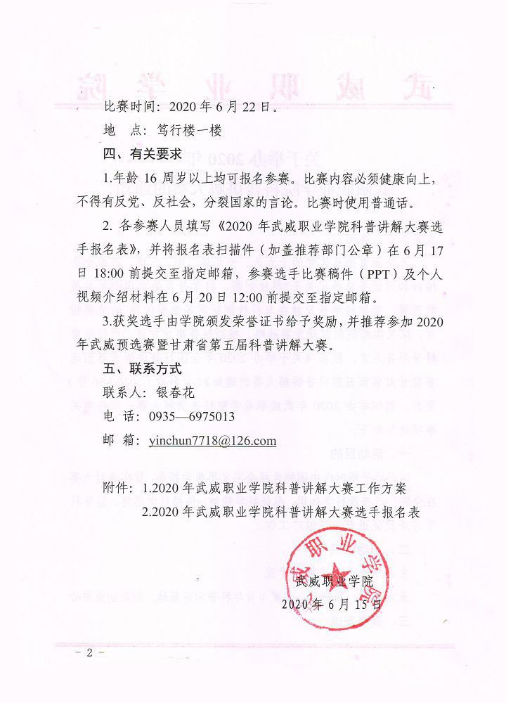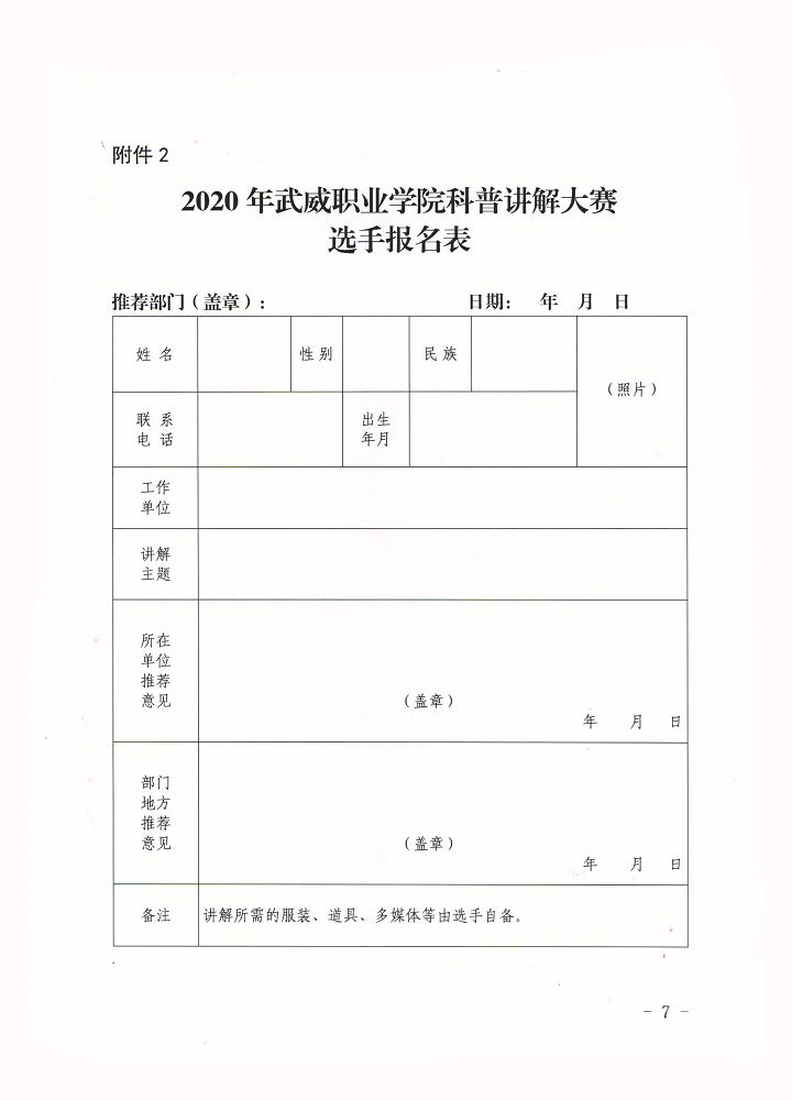 附件下載:2020年武威職業(yè)學院科普講解大賽報名表