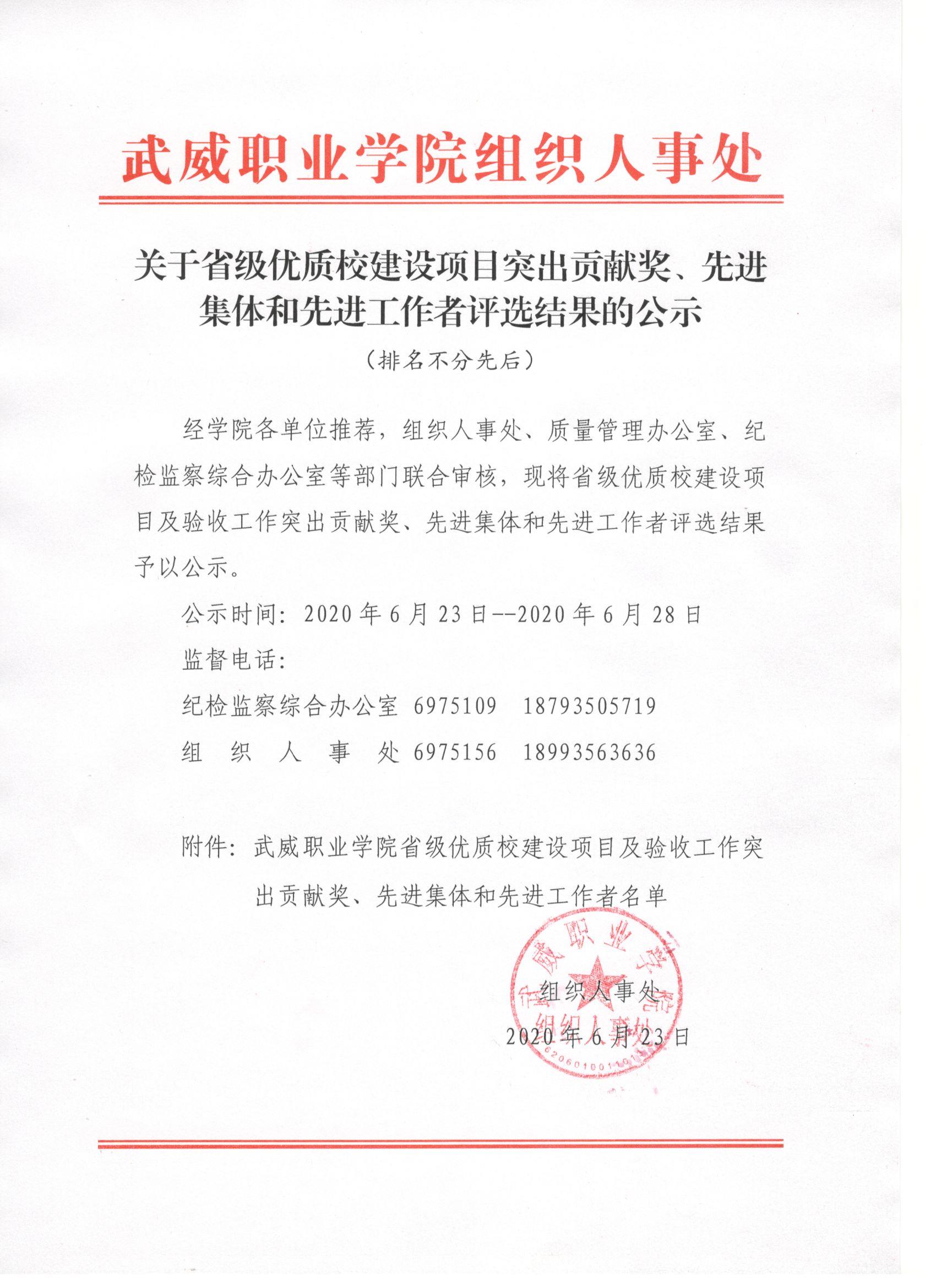 關(guān)于省級(jí)優(yōu)質(zhì)校建設(shè)項(xiàng)目突出貢獻(xiàn)獎(jiǎng)、先進(jìn)集體和先進(jìn)工作者評(píng)選結(jié)果的公示