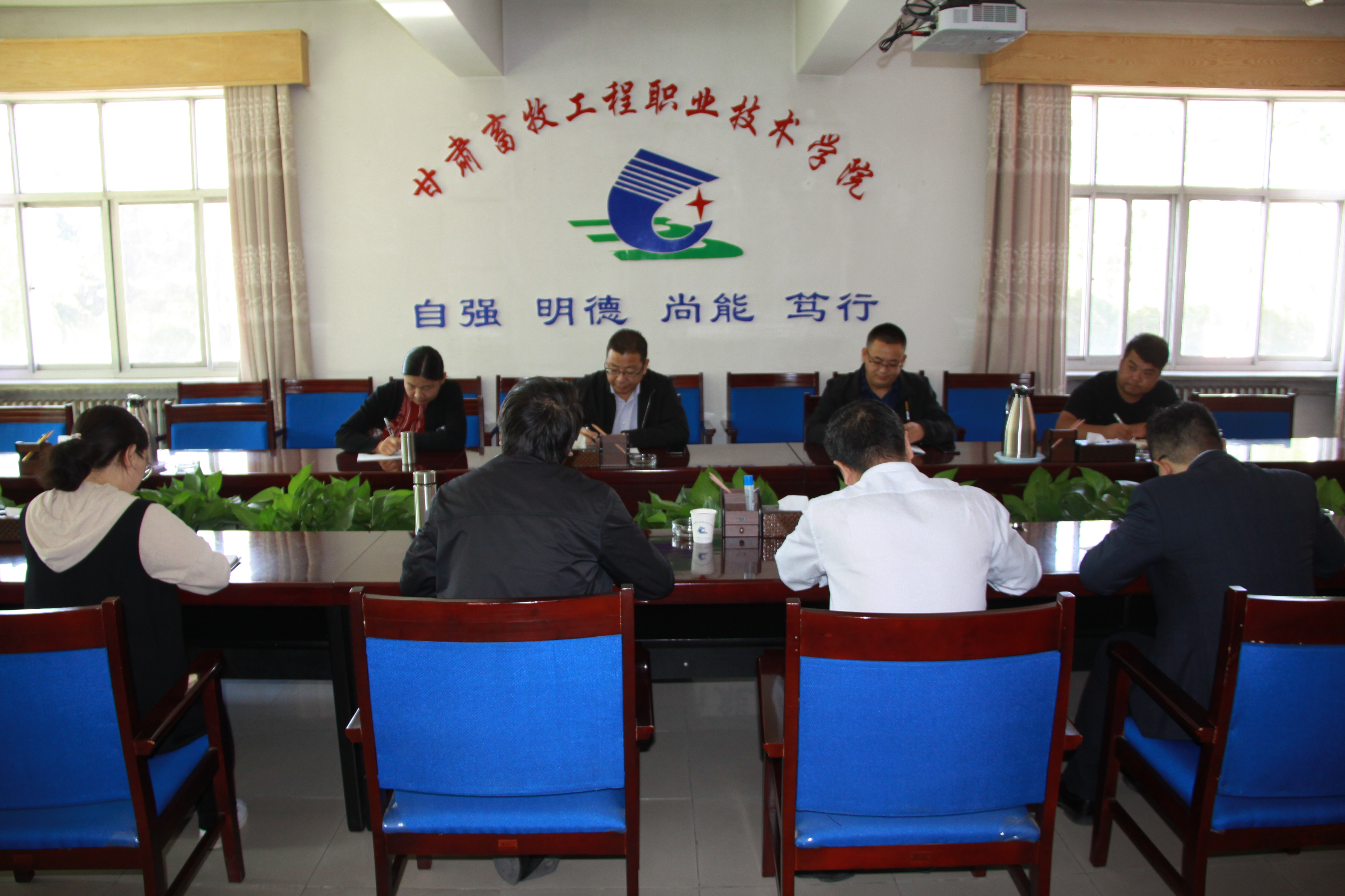 為進一步貫徹落實十九屆中央紀委四次全會、省紀委四次全會精神,更好的履行學院紀委、監(jiān)察專員辦公室監(jiān)督檢查和執(zhí)紀問責職責,切實推動學院全面從嚴治黨和黨風廉政建設、反腐敗工作深入開展,2020年9月17日上午,學院紀委書記、監(jiān)察專員陳曉煜帶領(lǐng)學院紀檢監(jiān)察綜合室、紀檢監(jiān)察室負責人王繼林、雷莉一行4人赴甘肅畜牧工程職業(yè)技術(shù)學院開展紀檢監(jiān)察工作交流。甘肅畜牧工程職業(yè)技術(shù)學院紀委書記、監(jiān)察專員張海軍出席交流會議,紀檢監(jiān)察室主任吳應昌,紀檢監(jiān)察綜合室范開欣、紀檢監(jiān)察室栗小婧一同交流。?