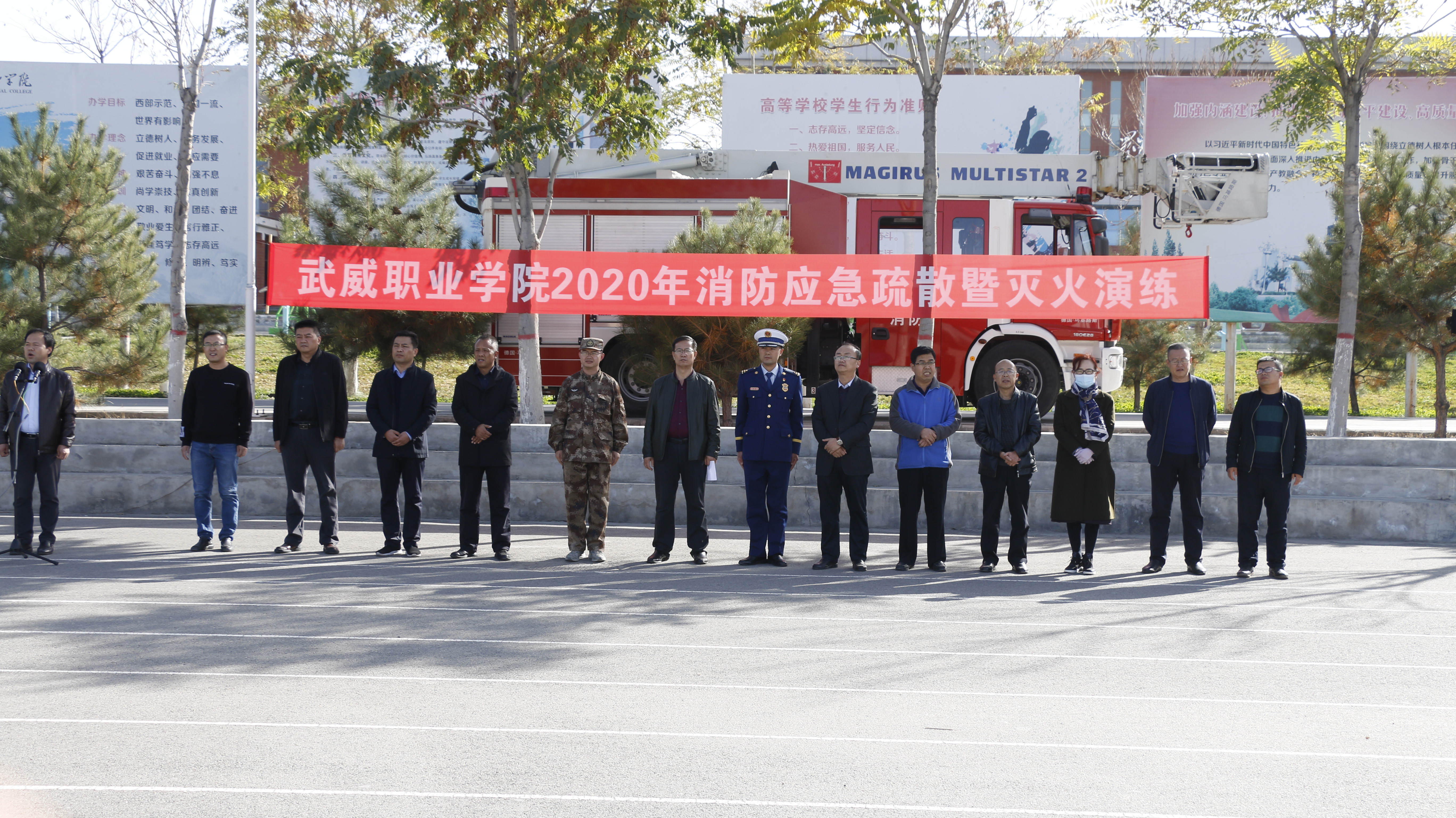 10月21日下午,學(xué)院聯(lián)合涼州區(qū)消防救援中隊(duì)舉行了2020年消防應(yīng)急疏散和滅火演練活動(dòng)。學(xué)院副院長(zhǎng)張開(kāi)禮、涼州區(qū)消防救援中隊(duì)指導(dǎo)員李躍興出席活動(dòng),保衛(wèi)處、學(xué)生工作處、各教學(xué)院系負(fù)責(zé)同志現(xiàn)場(chǎng)觀摩演練,約4300多名2020級(jí)新生參加了演練?。