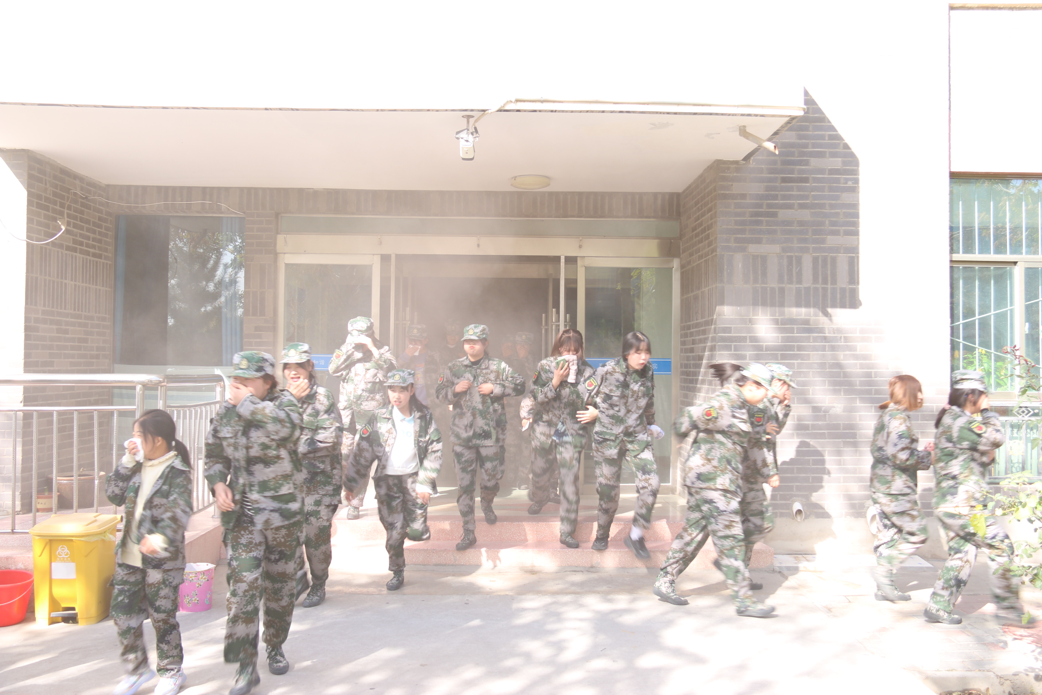 14時40分,疏散演練正式開始。隨著火災(zāi)警報響起,學(xué)生公寓樓冒出滾滾濃煙,公寓管理人員迅速組織學(xué)生有序疏散。在管理人員的引導(dǎo)下,同學(xué)們按照動作要領(lǐng),用濕毛巾捂住口鼻,俯身彎腰按照安全出口指示牌快速、有序從疏散通道撤離到安全地帶,整個過程緊張有序、實用性強,收到了預(yù)期效果。