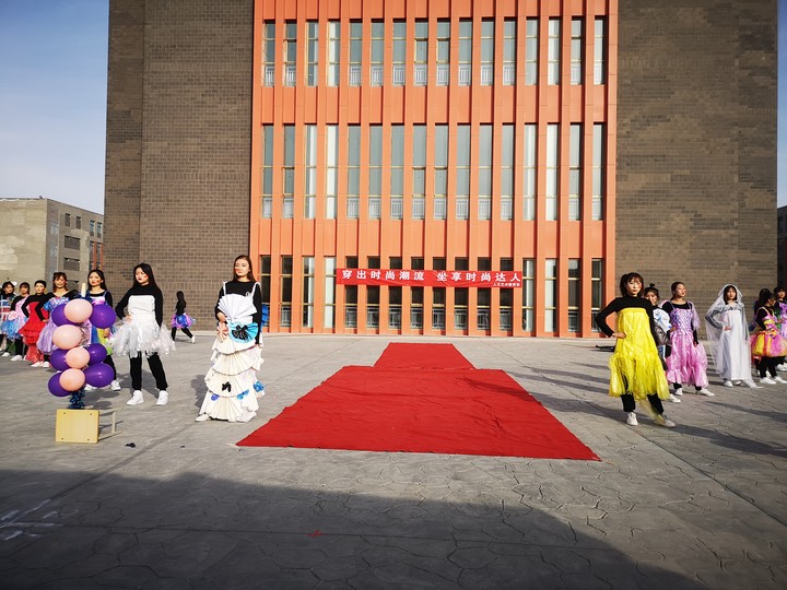 時裝秀由人文藝術(shù)教育系學(xué)前教育專業(yè)同學(xué)親手制作,再由同學(xué)們身著舊窗簾裁剪的長尾裙、廢撲克牌制作的“國王”套裝、廣告紙變身的鎧甲、塑料袋制成的披風(fēng)等等,跟著音樂的節(jié)奏,走起了“貓步”。通過這項活動使同學(xué)們要保護(hù)環(huán)境,節(jié)約糧食,倡導(dǎo)全體同學(xué)樹立環(huán)保意識和節(jié)約意識,希望環(huán)保理念能夠扎根于同學(xué)們的心中。