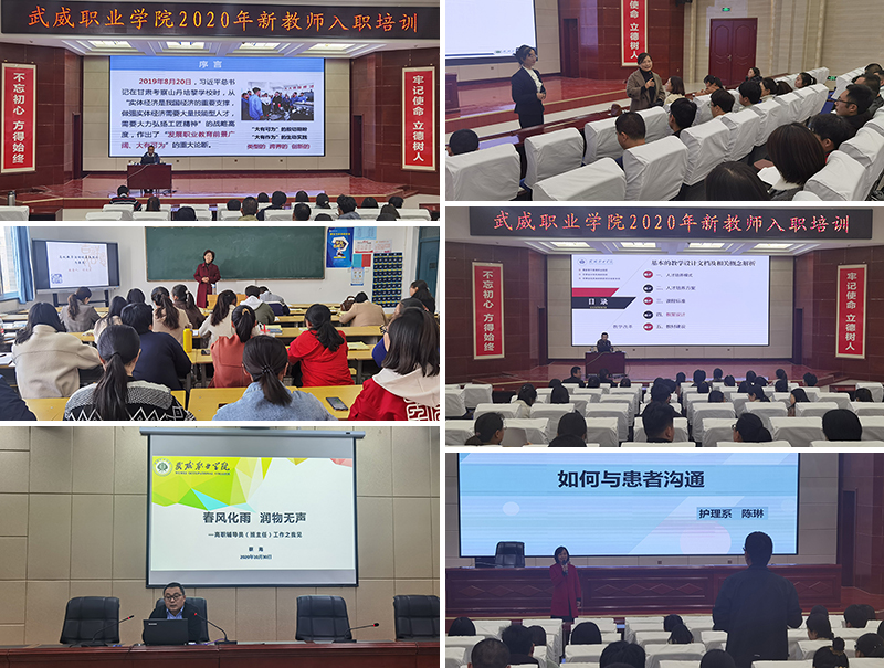 集中培訓(xùn)分為名師講堂、職業(yè)解碼、教學(xué)示范課和職業(yè)拓展四個(gè)模塊,分別邀請了學(xué)院黨委副書記、思政名師工作室主持人翟存祥、能源工程系負(fù)責(zé)人胡建宏、創(chuàng)新創(chuàng)業(yè)中心負(fù)責(zé)人顏魯薪、學(xué)工處教師付成榮、護(hù)理系教師趙穎和陳琳、現(xiàn)代農(nóng)業(yè)技術(shù)系教師蔡海作了精彩而又生動的報(bào)告。報(bào)告以《育師德、樹師風(fēng)、鑄師魂,努力打造師德高尚的新時(shí)代教師隊(duì)伍——從教師職業(yè)素養(yǎng)說起》《高校教學(xué)活動一般原理與實(shí)踐問題》《基本的教學(xué)設(shè)計(jì)文檔》《立足崗位勇?lián)?dāng) 扎根西涼育工匠——從青椒到骨干》《提高教學(xué)效率的有效方法》《如何與患者溝通》《春風(fēng)化雨潤物無聲——高職輔導(dǎo)員(班主任)工作之我見》為主題,使新教師對教師職業(yè)素養(yǎng)、師德師風(fēng)、教育教學(xué)改革、人才培養(yǎng)模式、創(chuàng)新創(chuàng)業(yè)、課堂教學(xué)及班主任工作有了全新的認(rèn)識。