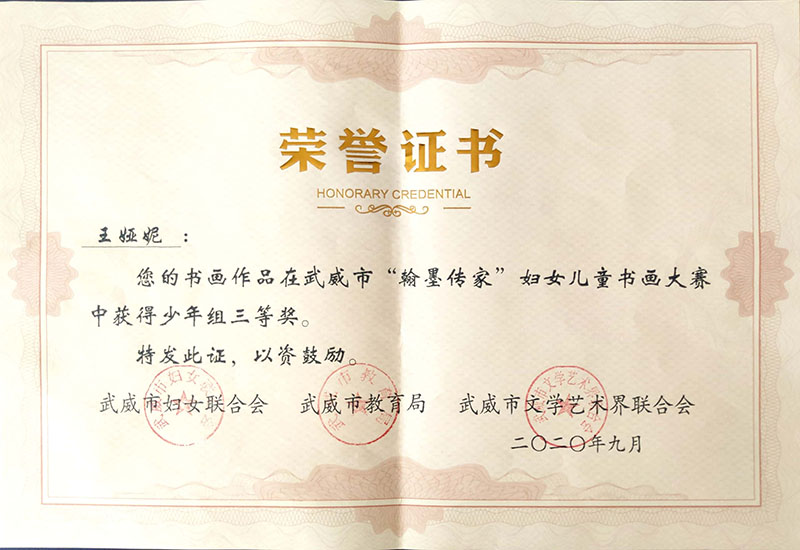 人文藝術(shù)教育系學(xué)生參加武威市“翰墨傳家”婦女兒童書畫大賽獲獎