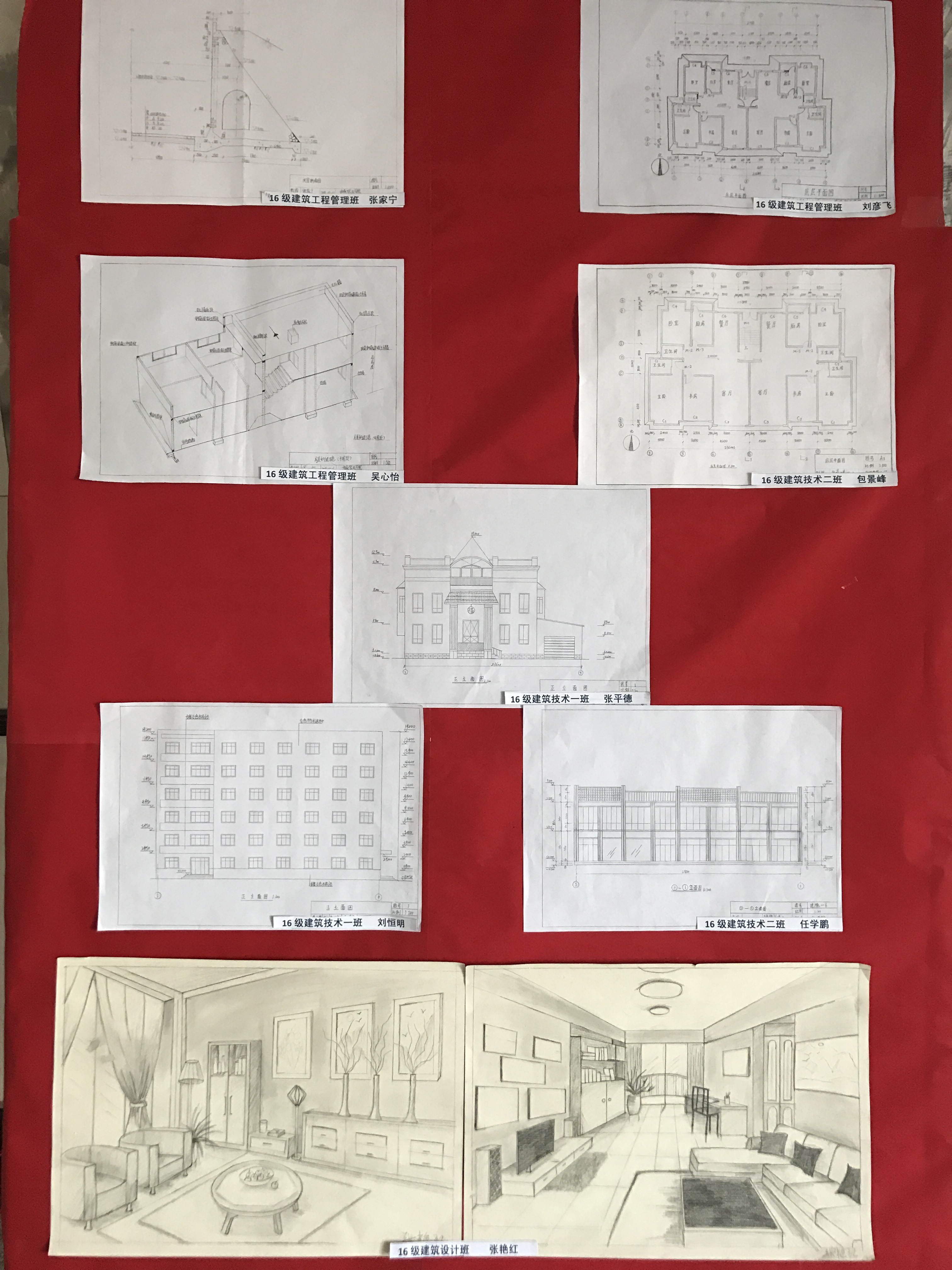 本次大賽重點由16級各專業(yè)新生參加,歷時一個月。經過前期精心的安排,學生自選圖幅,作品內容以常見的建筑形式和學院樓宇的外部造型為題材,重點反映學生對建筑物平面、立面等專業(yè)繪圖知識的理解程度。截止展出前共收到30余件參賽作品,經過評審老師認真、嚴格的審查,最終展出17幅。