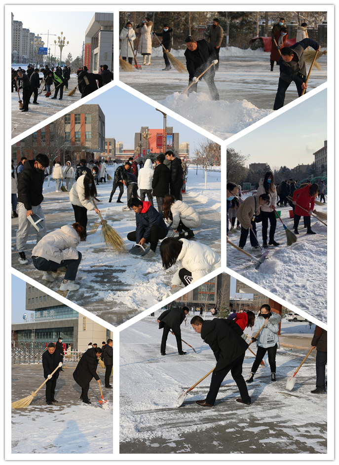 路面積雪既給過往師生和行人帶來行走不便,也存在安全隱患。學(xué)院領(lǐng)導(dǎo)及部分師生手拿掃帚、鐵鍬等工具,爭先恐后、相互配合,認(rèn)真清掃校園道路積雪,鏟除路面積冰。經(jīng)過大家持續(xù)努力,原本積雪結(jié)冰的路面恢復(fù)了正常,不僅干凈了,也消除了安全隱患。