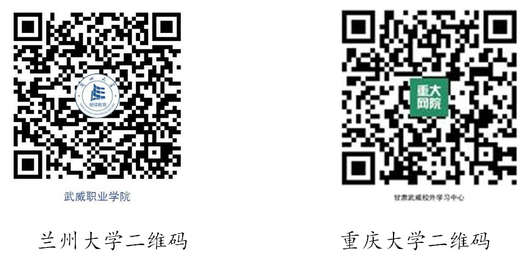 2.蘭州大學、重慶大學網(wǎng)絡教育報名老師電話(劉老師:18993563255)。疫情期間,為減少人員接觸,選擇報考蘭州大學、重慶大學的學員可通過二維碼預報名,預報名后等報名人員電話通知后再來學校進行信息確認和提交報名材料