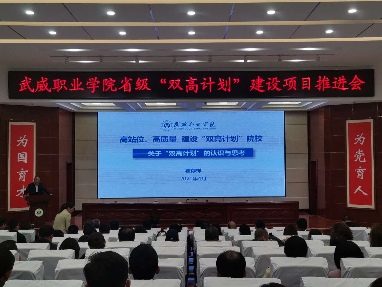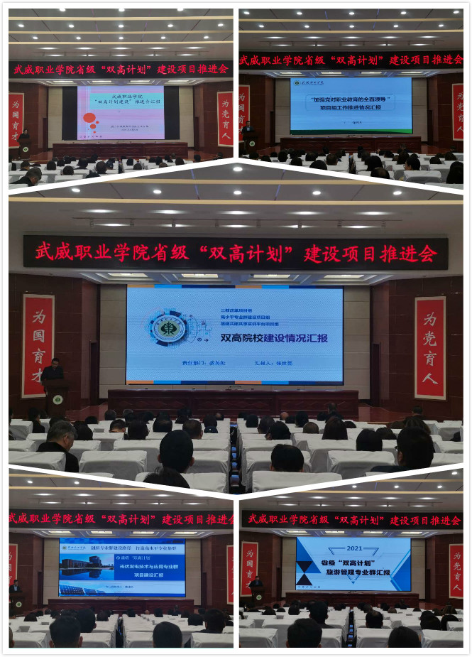 黨委書記、院長趙明在講話中指出,習近平總書記的重要指示和李克強總理的批示,為我們奮力構建高質量職業(yè)教育體系指明了方向。學院成功入選省級“雙高計劃”建設單位,是學院發(fā)展歷程上的又一里程碑,為學院高質量發(fā)展注入了新動能,帶來了新機遇。我們既為前期工作成效感到欣喜,也要認清當前形勢和未來發(fā)展的壓力與緊迫感,抓住這次契機,提升自身硬實力和軟實力。在未來幾年,把“雙高計劃”建設作為學院的中心工作和改革發(fā)展的政治任務。他提出五點工作要求,一是要充分發(fā)揮黨組織的戰(zhàn)斗堡壘作用。以習近平新時代中國特色社會主義思想為指導,加強黨對“雙高計劃”建設項目的全面領導,以一流黨建引領高水平建設,切實把黨建工作與項目建設同部署、同落實、同考評。二是要加強領導,強化責任。“雙高計劃”的建設不能寫在紙上,講在嘴上,而要落實在行動上,所有領導干部要提高擔當意識、服務意識、發(fā)展意識,立足當前,著眼長遠,攻難克堅,為學?!半p高”建設做貢獻。三是要加強融合,提升工作效能。將“雙高計劃”建設與提質培優(yōu)、技能甘肅等重點工作融入日常,同步謀劃、一體推進,確保項目建設有序進行。對標國家高水平院校和高水平專業(yè)群進行高標準謀劃,完善高水平成果培育機制,主動提標、自我加壓,持續(xù)發(fā)力、持續(xù)攻堅,形成更多更好的成果。四是要改革創(chuàng)新,加強績效管理。進一步加強制度建設,持續(xù)創(chuàng)新管理體系、完善管理制度、創(chuàng)新管理辦法,規(guī)范辦事流程,完善績效考核辦法,切實增強績效考核的導向性、方向性、引領性,激發(fā)廣大教職員工參與“雙高計劃”建設的積極性、主動性。五是健全督導機制,加強監(jiān)管。通過開展定期或不定期、形式多樣的督查工作,切實加強管理,推動任務落實。