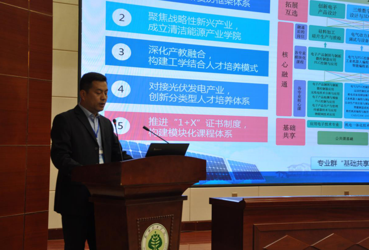 研討會展示了新能源類專業(yè)“產(chǎn)教融合、校企合作”優(yōu)秀案例。酒泉職業(yè)技術(shù)學(xué)院新能源工程學(xué)院副院長程明杰展示了《“平臺搭橋、六維融通”校企合作共建風(fēng)力發(fā)電工程技術(shù)專業(yè)》,甘肅工業(yè)職業(yè)技術(shù)學(xué)院創(chuàng)新創(chuàng)業(yè)學(xué)院副院長陳浩龍展示了《創(chuàng)新校企合作模式推動產(chǎn)教融合發(fā)展——基于“1+X”融合型專業(yè)的建設(shè)》,甘肅機(jī)電職業(yè)技術(shù)學(xué)院教師鄭偉展示了《運(yùn)用“積極教學(xué)法”讓課堂變活躍、教學(xué)更有效》,武威職業(yè)學(xué)院教師付江鵬展示了《基于成果導(dǎo)向的人才培養(yǎng)改革--高職班導(dǎo)師工作實踐》等優(yōu)秀案例,案例展示贏得與會代表一次次熱烈的掌聲。